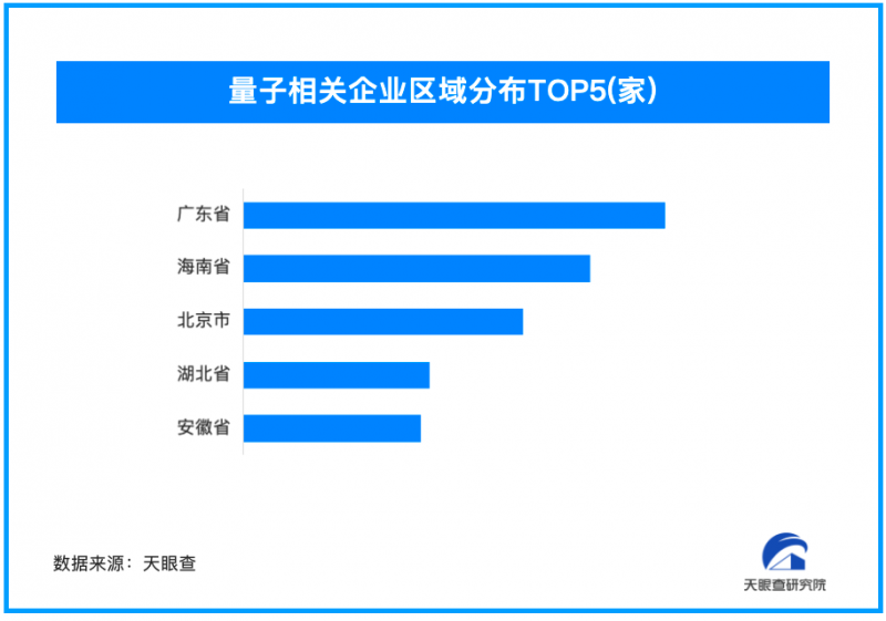 天眼查专业版数据显示,截至目前,我国现存量子领域相关的企业有2万余家。从地域分布上看,广东省、海南省和北京市相关企业数量位居前列,分别拥有13468家、11076家、8916家;从成立时间来看,超6成的相关企业成立于1-5年内。
